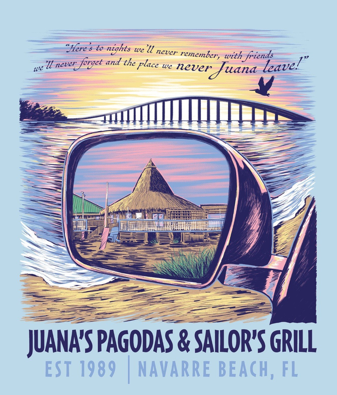 Available in 3 colors. "Here's to the night's we'll never remember, with friends we'll never forget and the place we Never JUANA Leave!"